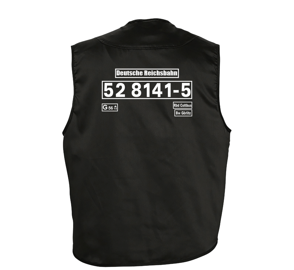 Der hochwertige Druck mit Eisenbahnmotiv verleiht der Weste einen individuellen, professionellen Look und macht sie zu einem echten Hingucker.
