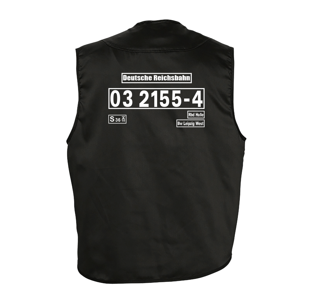 - Schwarze Weste mit hochwertigem Eisenbahnmotiv-Druck